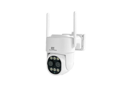 二眼レンズ搭載の屋外パンチルトカメラです。望遠レンズを搭載し、最大10倍ズーム可能。 さらに発光LEDで夜間もフルカラー撮影が可能なモデルです。